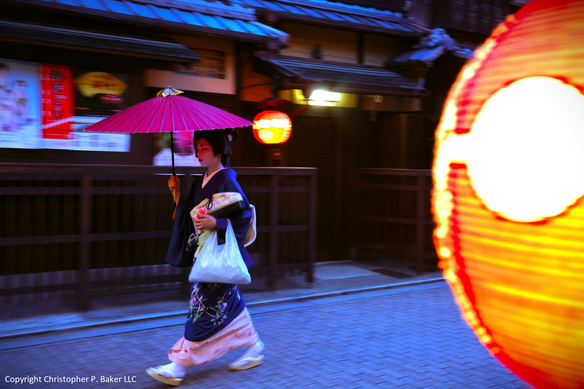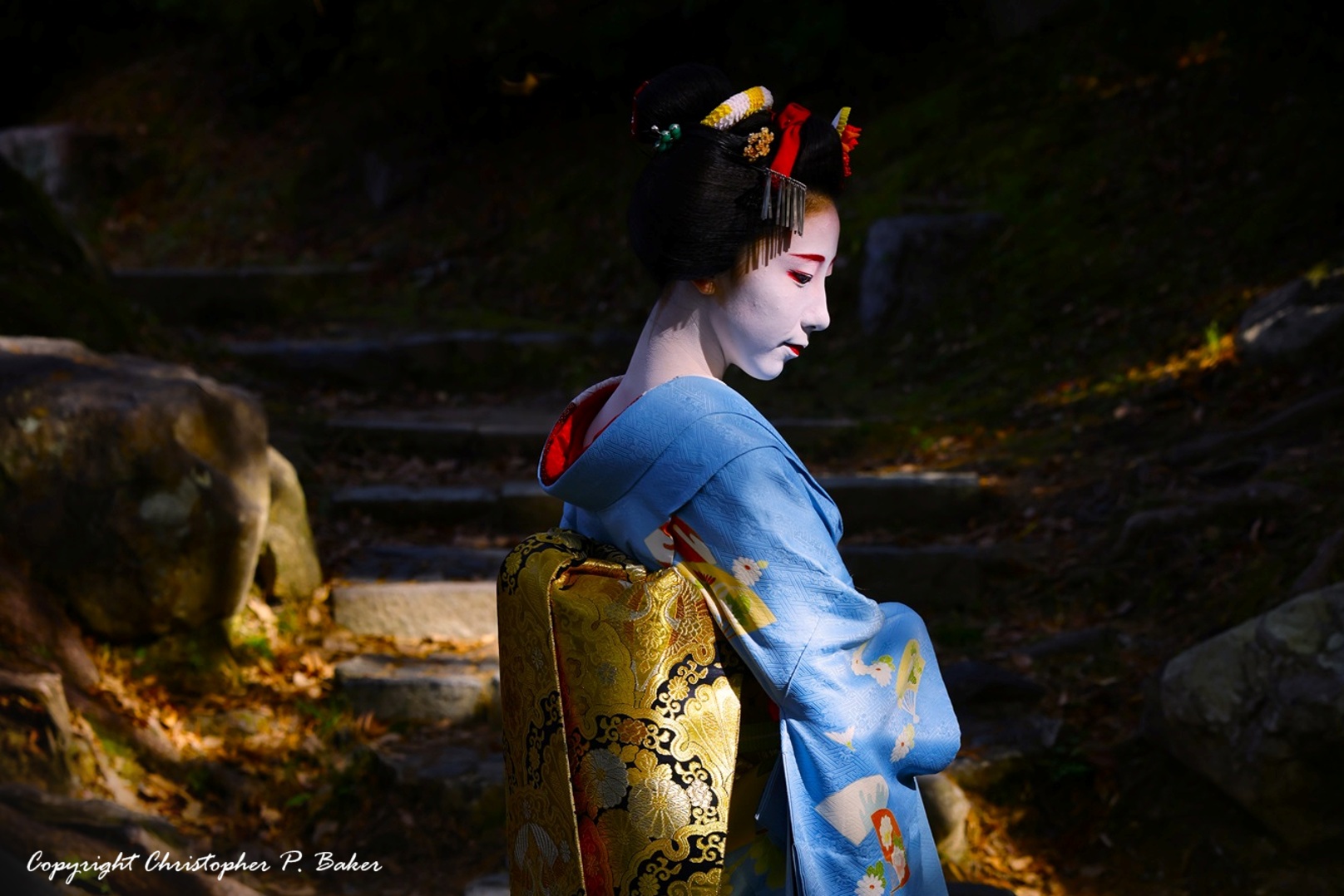 Maiko in traditional costume, Maruyama Park, Kyoto; copyright Christopher P Baker LLC